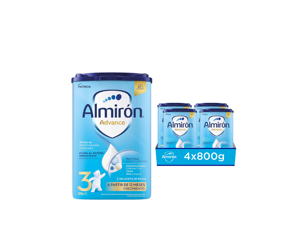 Almirón Advance 3 800g Leche de crecimiento para bebés a partir de los 12 meses, con su combinación unica de ingredientes y nutrientes, contribuye al desarrollo futuro del bebé.